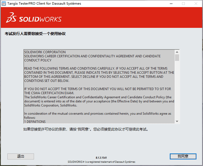 5、下载结束后,点击条款下的【我同意】。点击【开始考试】即是开始考试倒计时(以CSWA为例考试时间为180分钟,总计14道题目)