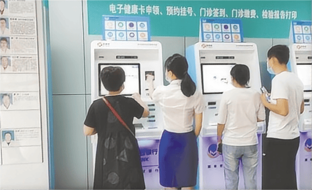 ▲川渝群众在异地医疗机构自助机使用居民电子健康卡(码)