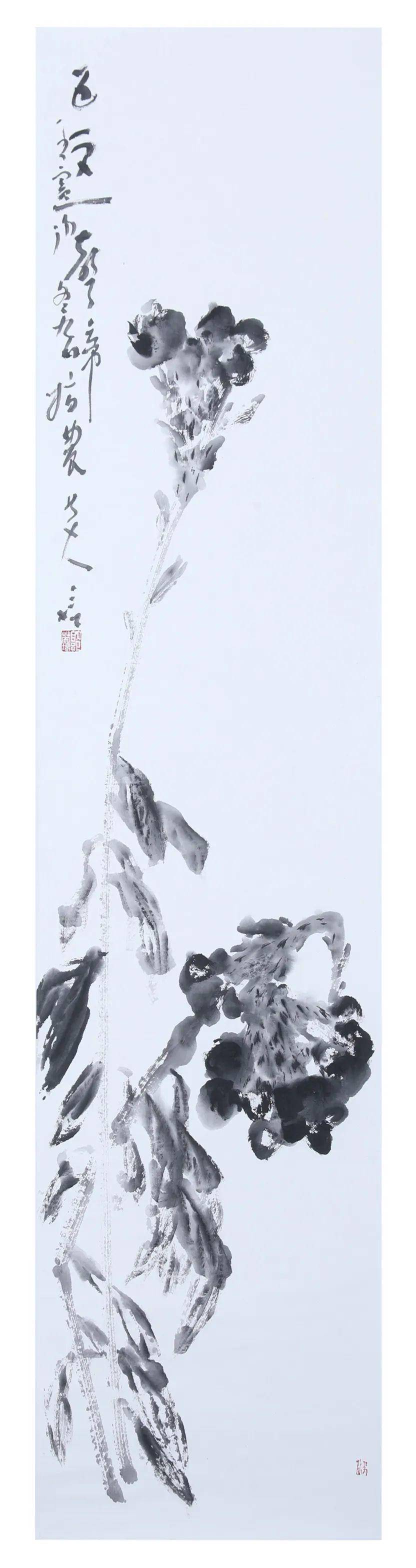 其二,由于他没经历过学院派所谓“系统”的造型训练,这恰恰成就了他。他在形的追求上多了自由少了藩篱。他借来古人,通了造化,而后他又以他那老辣而婀娜的书写,纵肆而潇洒的放胆直取,写出的全是他心里的形。这种形恰好与“似与不似”相合,妙不可言。此谓“重意而轻形”。