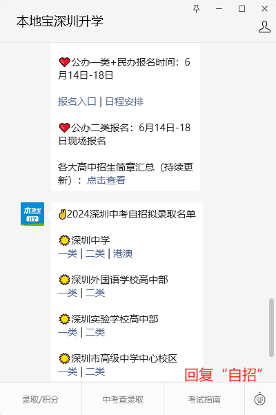 回复【中考录取】可获取2024深圳中考录取结果查询入口